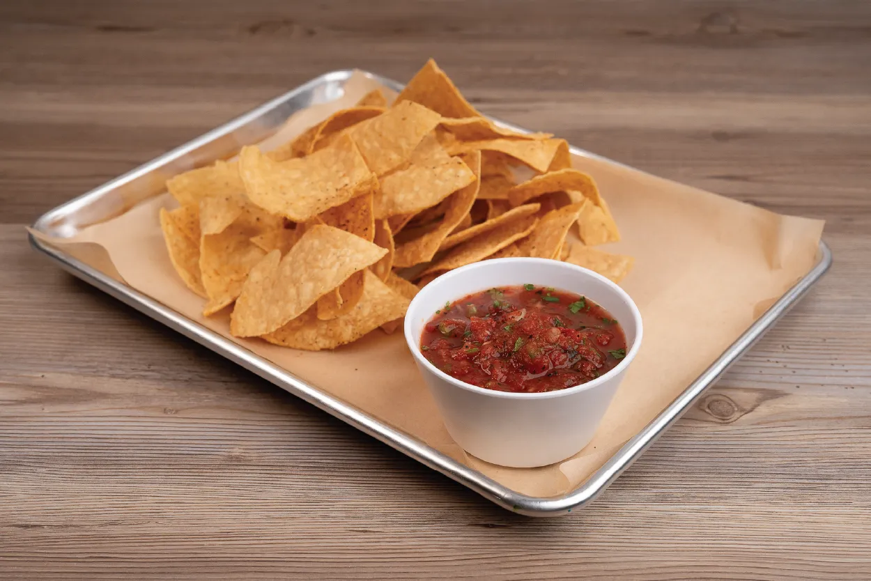 Crispy tortilla chips, served with our fresh, house-made salsa, offer a burst of flavor with every dip. It’s the perfect snack to share or enjoy on its own, full of tangy, spicy, and zesty goodness.